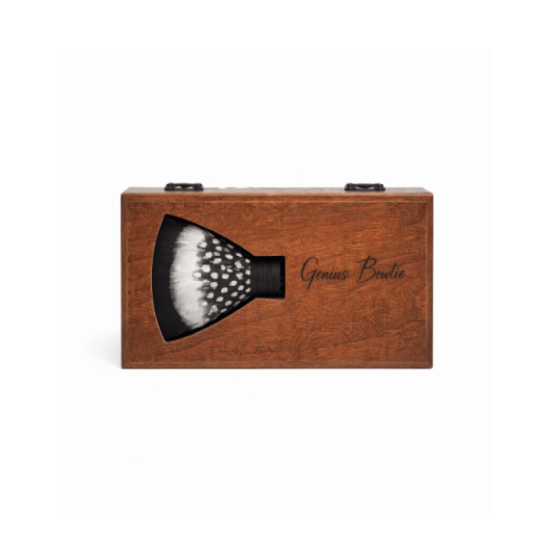Packaging: Arrives in a hand-crafted natural wooden box. Outer packaging is natural craft paper with our logo seal. Includes the GeniusBowtie booklet.